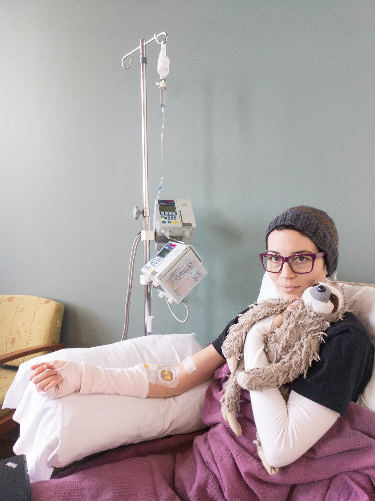 ![Image is of a white person sitting next to an IV pole receiving an infusion in their right arm. They are holding a stuffed sloth in their left arm and looking at the camera.]](https://beingcharis.com/wp-content/uploads/2018/02/1.jpg?w=606)