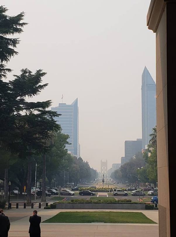 The smoky view of Capital Avenue with the Tower Bridge in the background. Sacramento, CA. Image courtesy Denice Ristau.